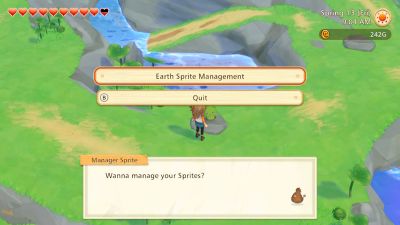 The Player can access the Sprite Shop by talking to Boss Sprite, as well as other features such as the Lost and Found and the option to release animals. Besides the Boss Sprite, the Player can speak to Manager Sprite in the village to assign Follower Sprites to each of the different resource Sprites. Doing so will allow the Player to speak to those Sprites and collect free materials daily.